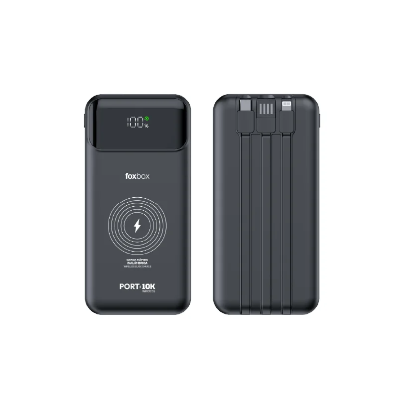 El powerbank de 10.000mAh ofrece carga rápida PD3.0 y QC3.0, carga inalámbrica Qi y múltiples opciones de conexión gracias a sus 5 salidas y 3 cables integrados. Fabricado en ABS y disponible en color negro, permite cargar varios dispositivos a la vez con una potencia máxima de 22.5W. Incluye display de batería y compatibilidad con USB-C, USB-A, Lightning y carga inalámbrica de hasta 15W, brindando energía rápida y segura en cualquier momento.