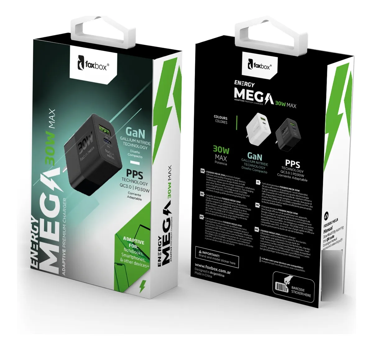 Experimenta la excelencia con el cargador de pared FoxBox Mega. Gracias a su diseño compacto y optimizado mediante la tecnología GaN, este cargador ofrece una carga rápida y eficiente preservando la duración de la batería de tus dispositivos. Es ideal para cargar portátiles, teléfonos móviles y otros dispositivos con facilidad y comodidad